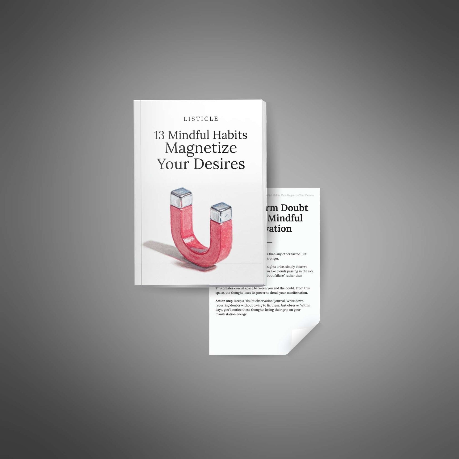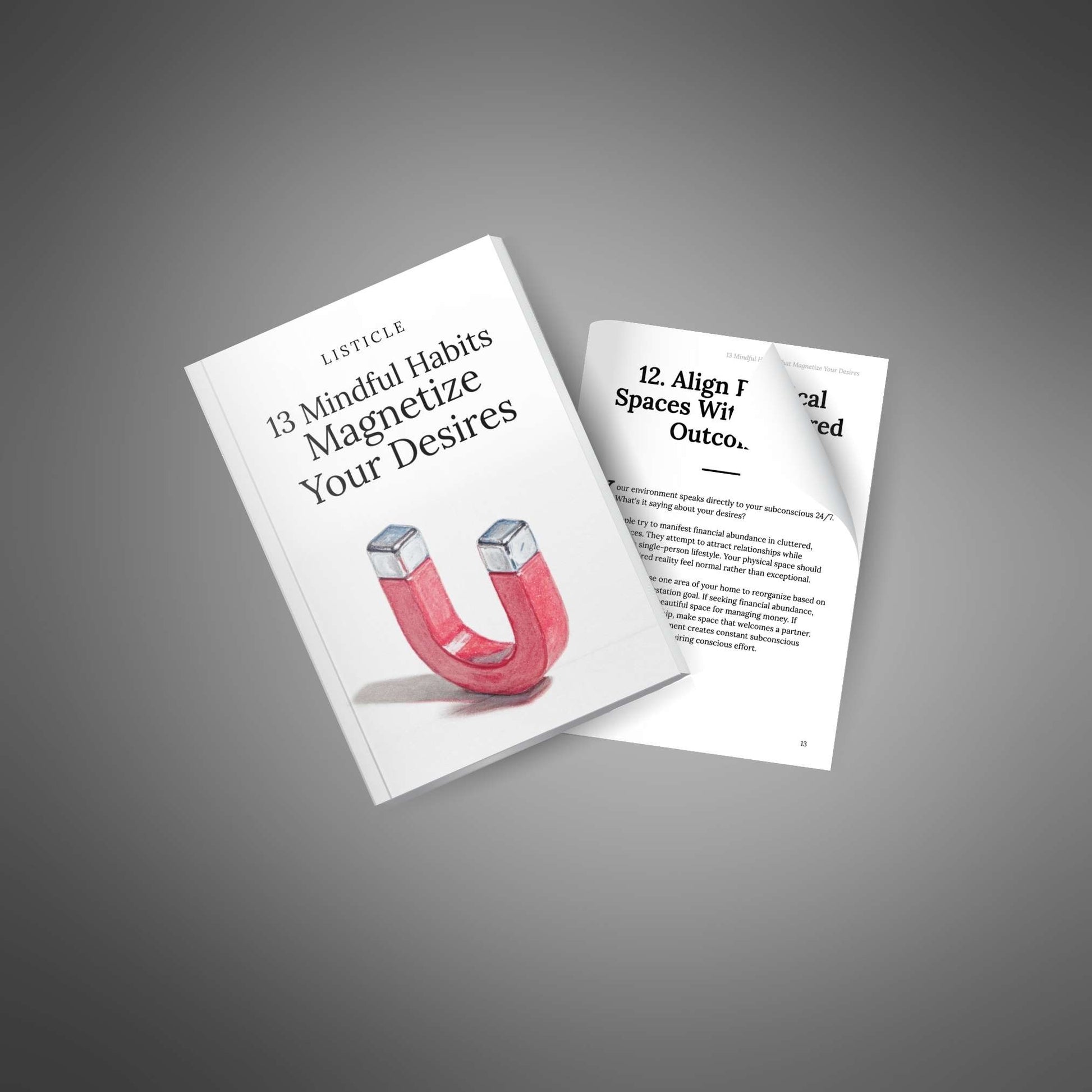 This listicle is a ready-to-use content asset designed to inspire, educate, and engage your audience with skimmable, practical insights. It’s perfect for resellers who want to offer a motivational lead magnet that helps readers connect mindfulness with manifestation in simple, everyday ways. With 13 clear and actionable habits, it shows your customers how to align their mindset and energy to attract the life they truly want.