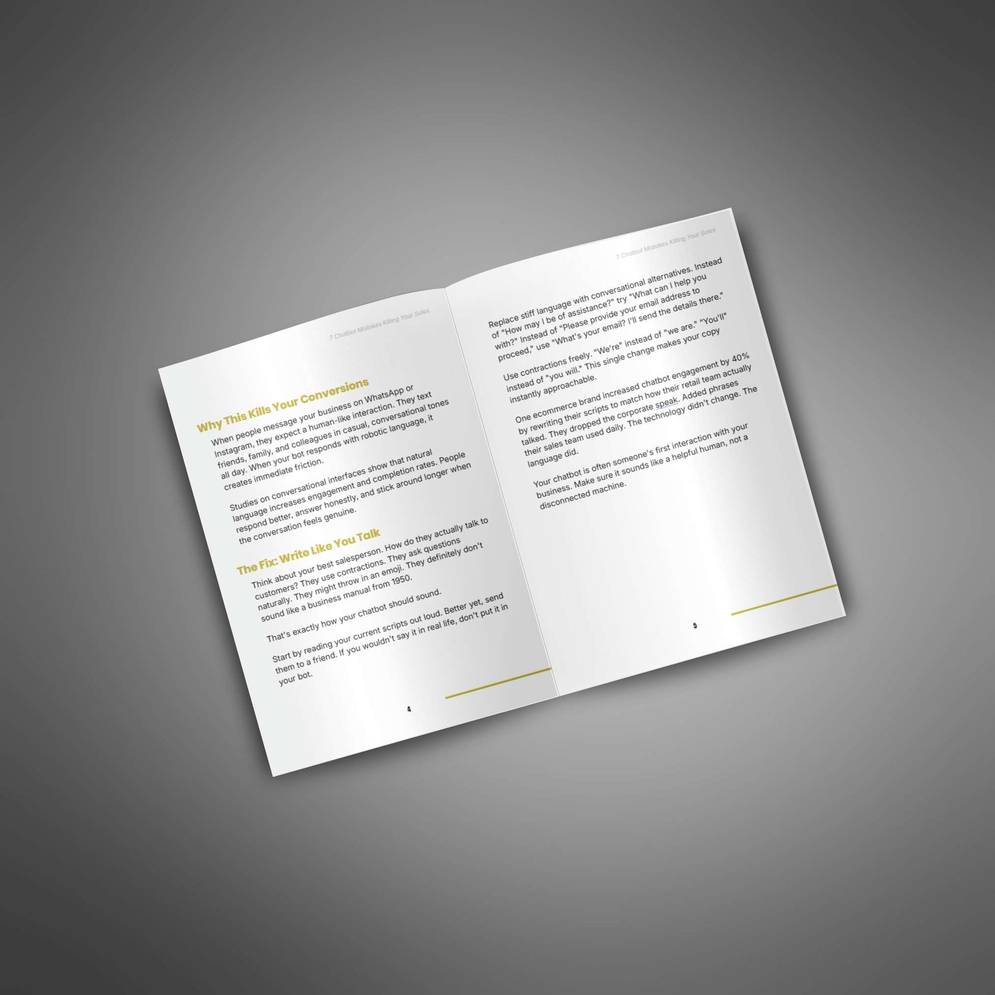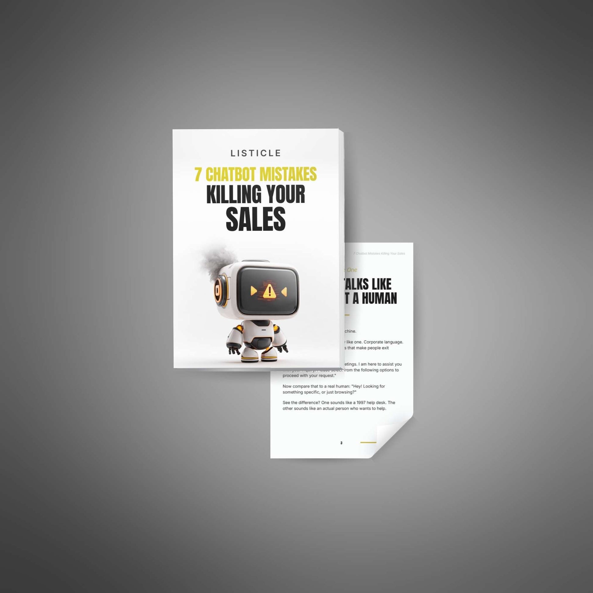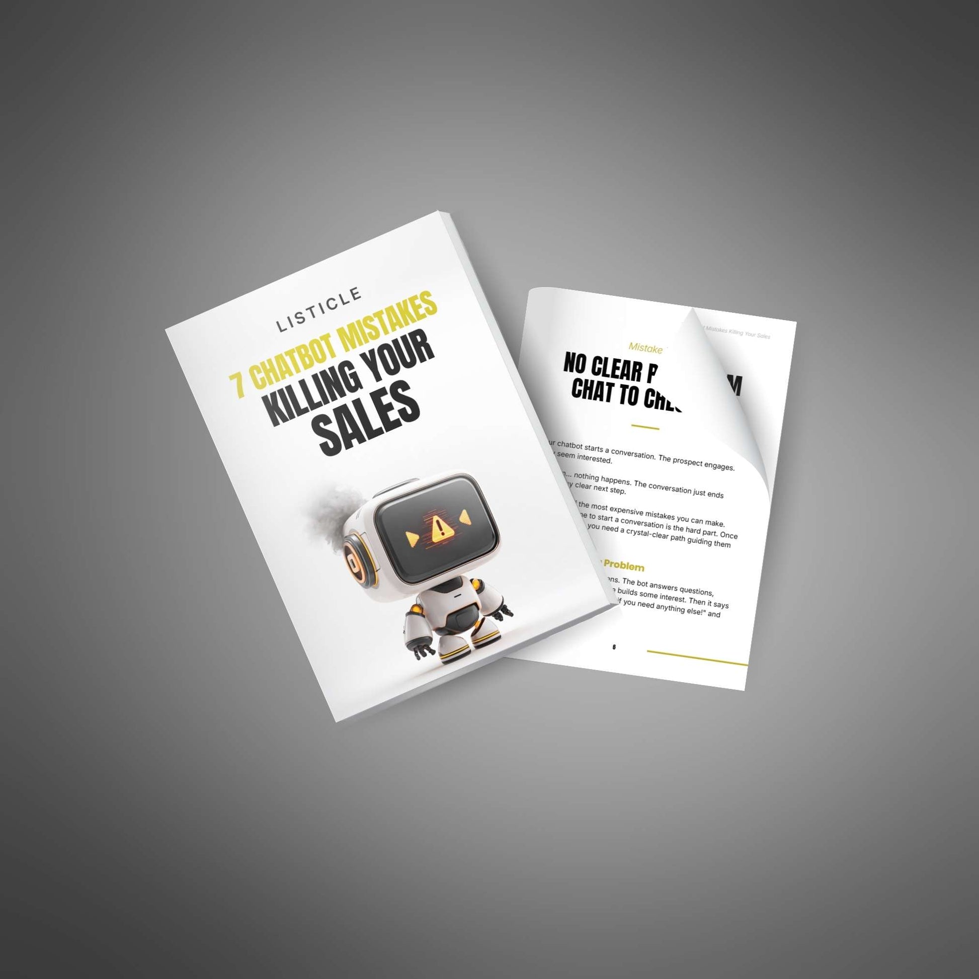 This listicle is a ready-to-use content asset designed to quickly educate, engage, and qualify your audience with clear, high-value insights about chatbot performance. It’s perfect for resellers who want to offer a practical lead magnet that helps businesses understand why their chatbots may be losing sales. With a clear narrative and 7 practical mistakes explained, it shows your customers how small chatbot fixes can lead to better conversations and more conversions.
