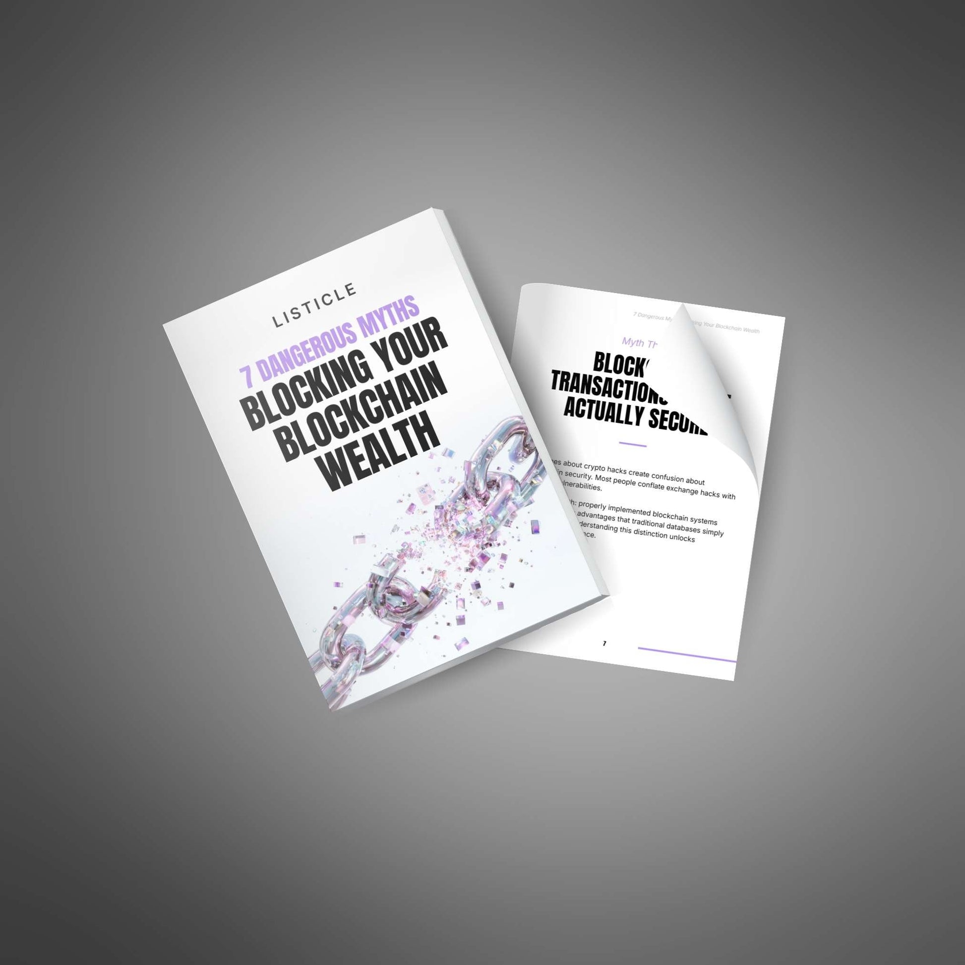 This listicle is a ready-to-use content asset designed to quickly educate, engage, and qualify your audience with skimmable, high-value insights. It’s perfect for resellers who want to offer a practical lead magnet that builds awareness around dangerous blockchain myths without overwhelming the reader. With a strong, clear narrative and 7 myth-busting lessons, it shows your customers how to think smarter about blockchain and avoid beliefs that quietly block long-term wealth.