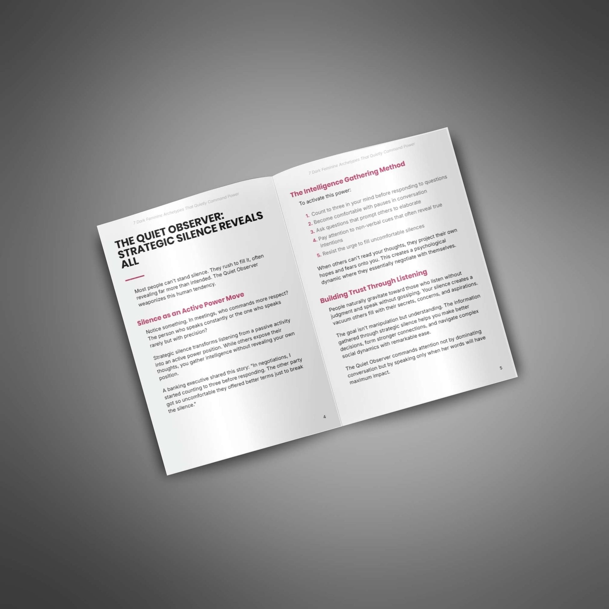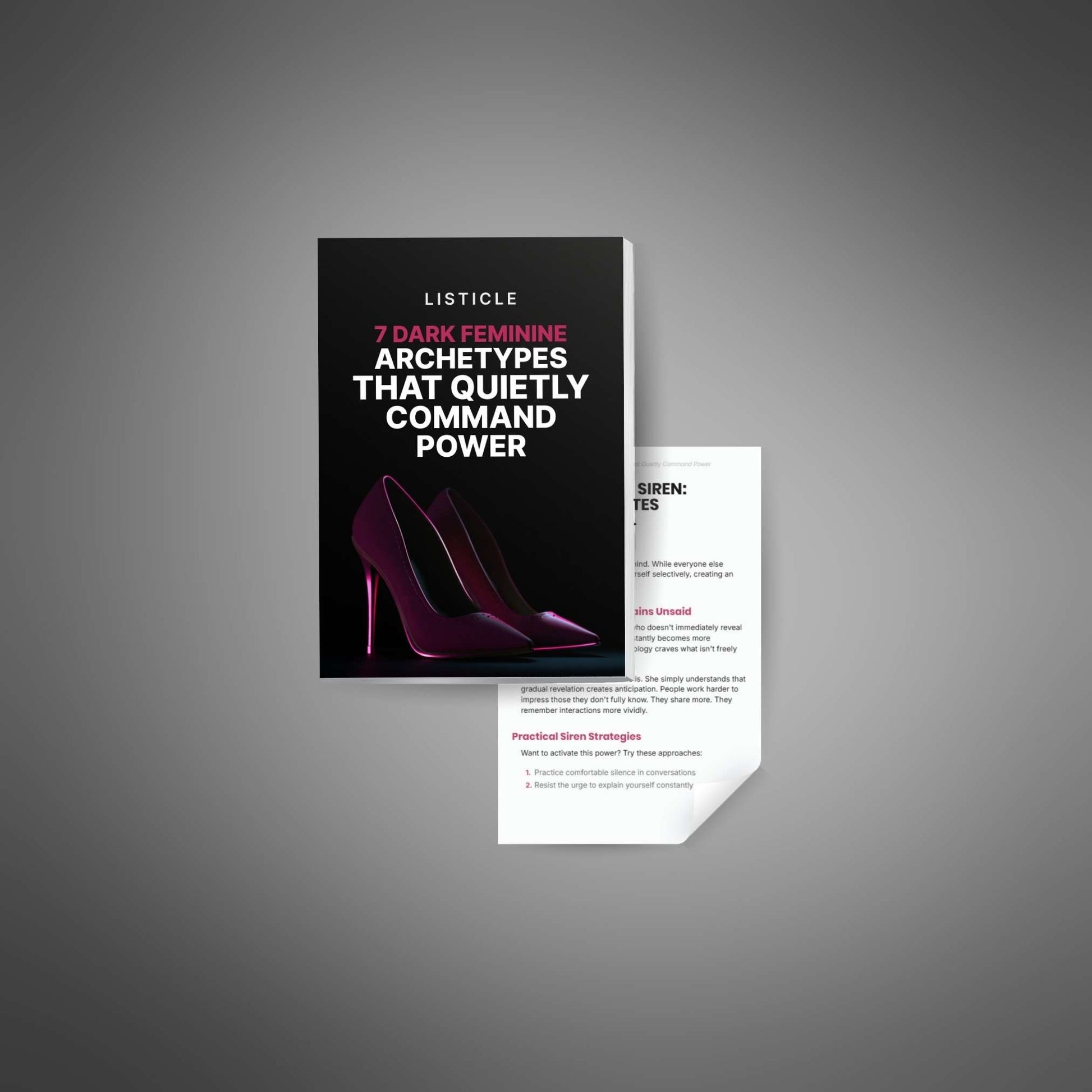 This listicle is a ready-to-use content asset designed to quickly educate, engage, and qualify your audience with skimmable, high-value insights. It’s perfect for resellers who want to offer a practical lead magnet that introduces dark feminine power without overwhelming the reader. With a clear narrative and 7 explained archetypes, it shows your customers how to strengthen their presence and confidence in a subtle, powerful way.