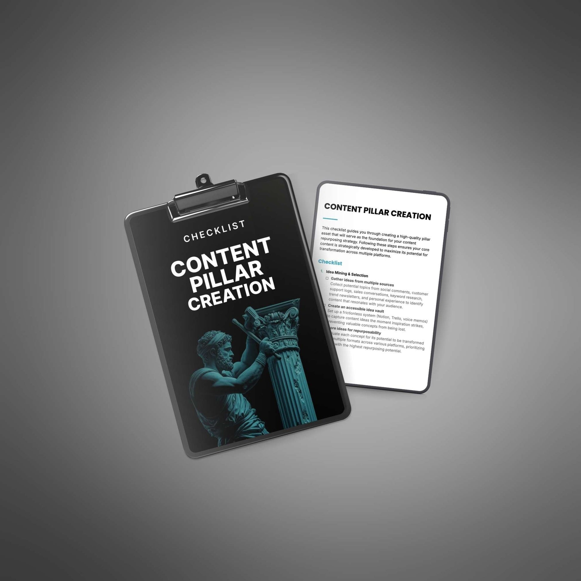 Checklist to guide your customers through creating strong pillar content that can be turned into many smaller pieces, helping them save time and grow across platforms.