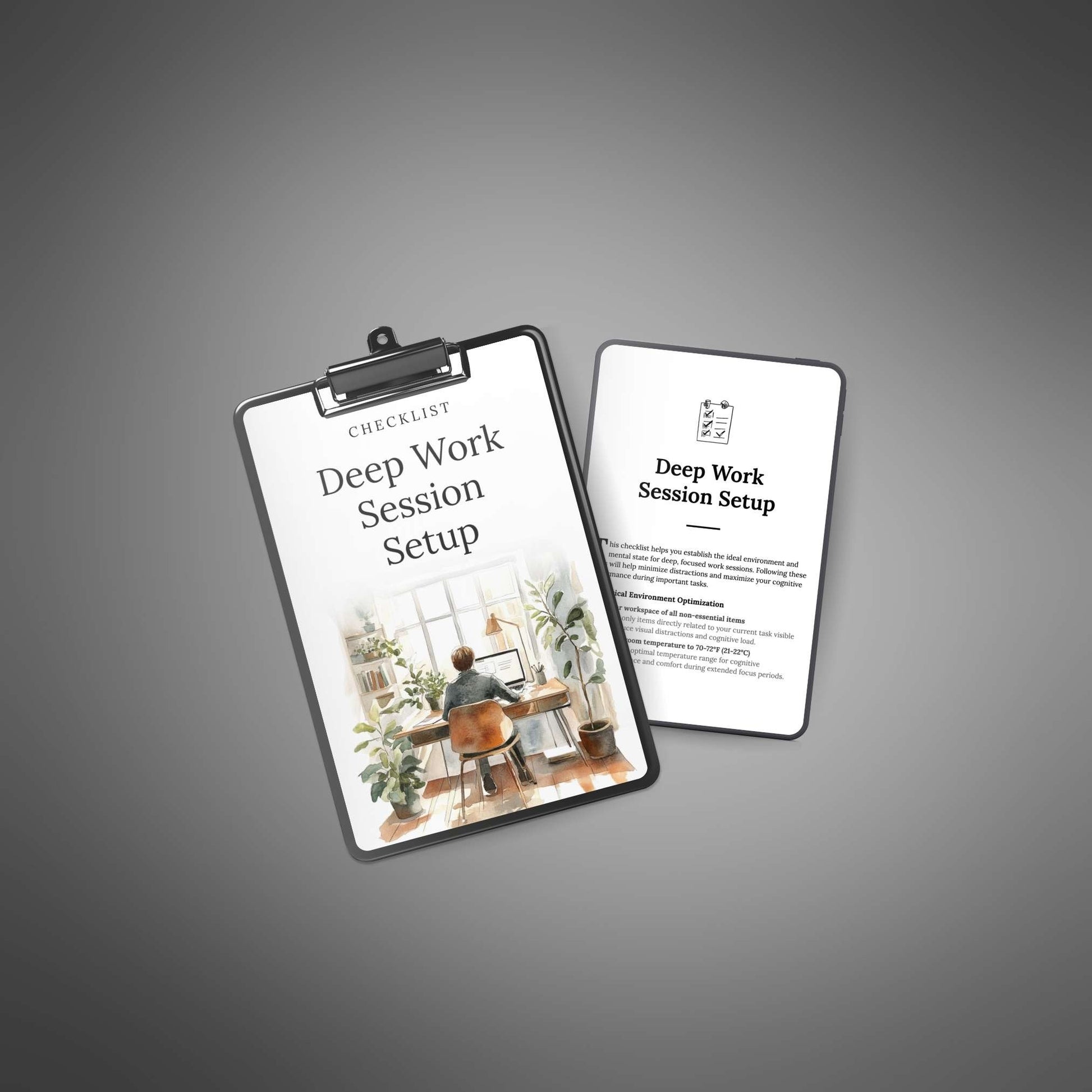 This checklist is an essential tool for your customers to set up distraction-free work sessions that support deep thinking and productivity. It provides clear, easy-to-follow steps to help them create the right space, mindset, and habits for better focus and results.