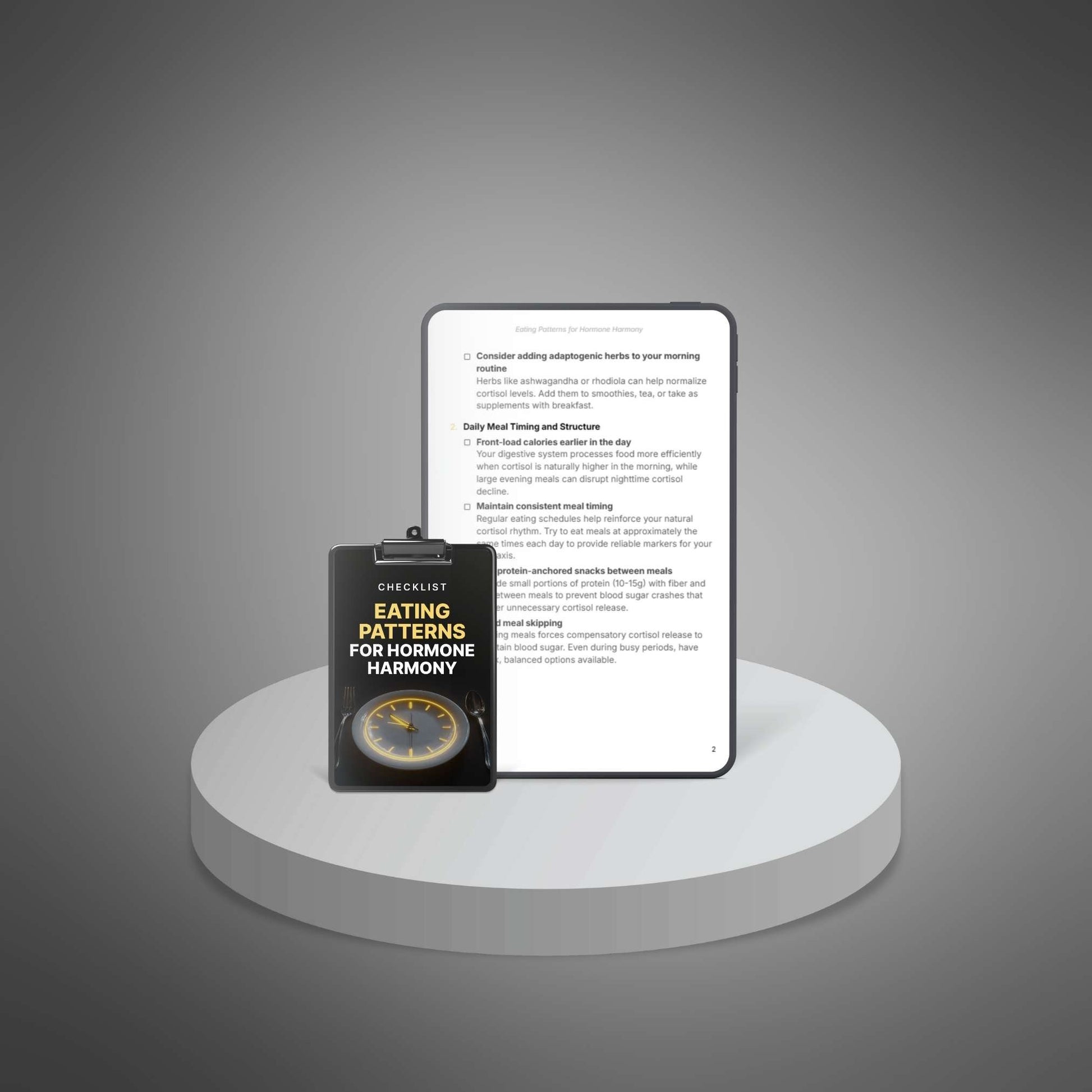 This checklist is an essential tool for your customers to build daily eating habits that support hormone health and reduce stress. It offers easy-to-follow steps for structuring meals and snacks to keep cortisol levels balanced throughout the day, helping improve energy, sleep, and mood naturally.