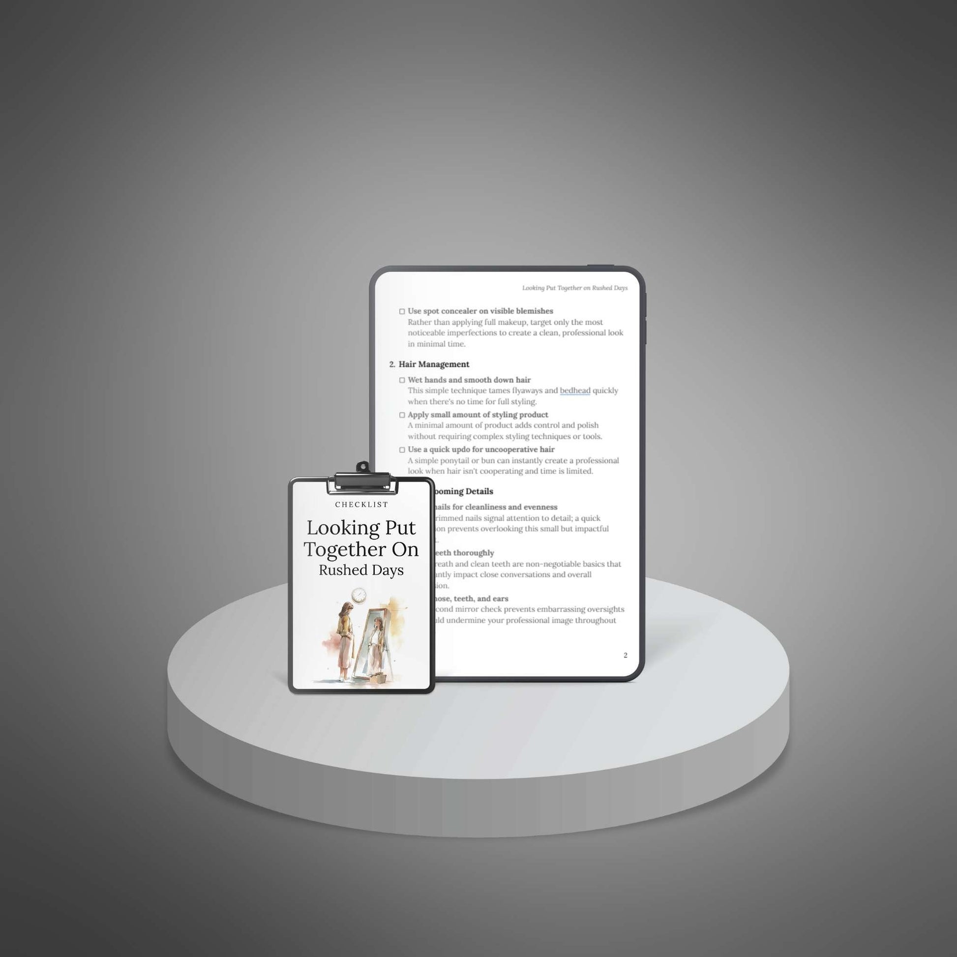 This checklist is an essential tool for your customers to feel confident and look polished, even on the busiest days. It offers easy-to-follow steps for getting ready fast, helping them stay professional and put-together without stress or wasted time.