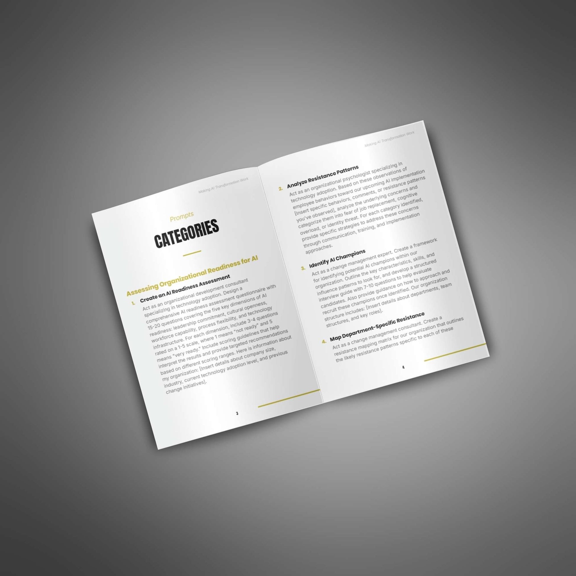 Prompt pack designed to help your customers use AI to plan, lead, and support successful transformation in businesses.