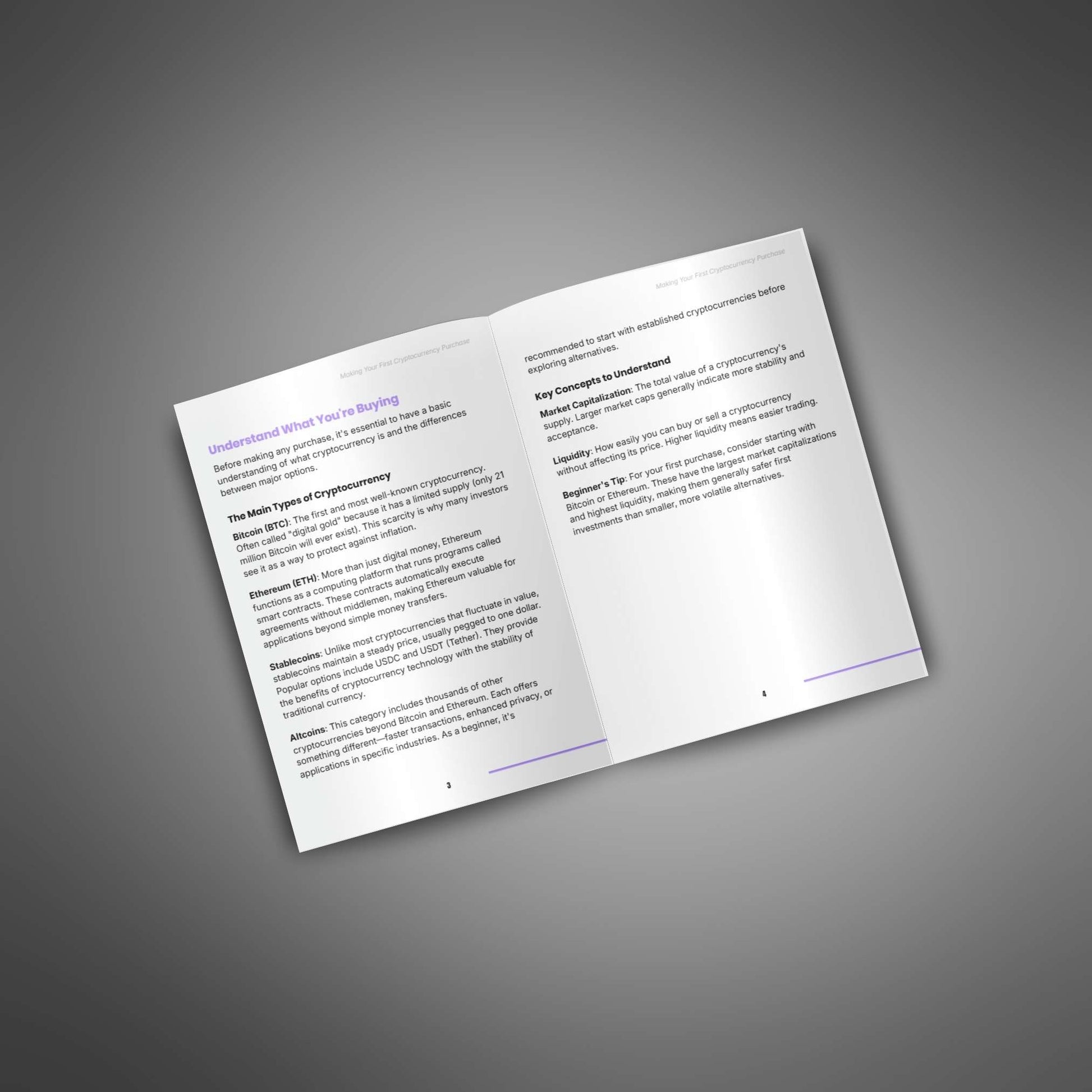 Guide designed to help your customers make their first cryptocurrency purchase with clear steps for buying safely and protecting their digital assets.