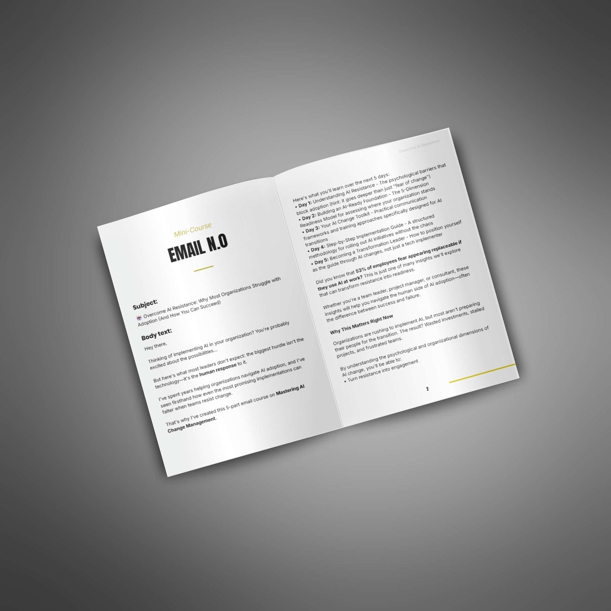 Email course designed to help your customers handle fear and resistance to AI at work using simple strategies and positive messaging.