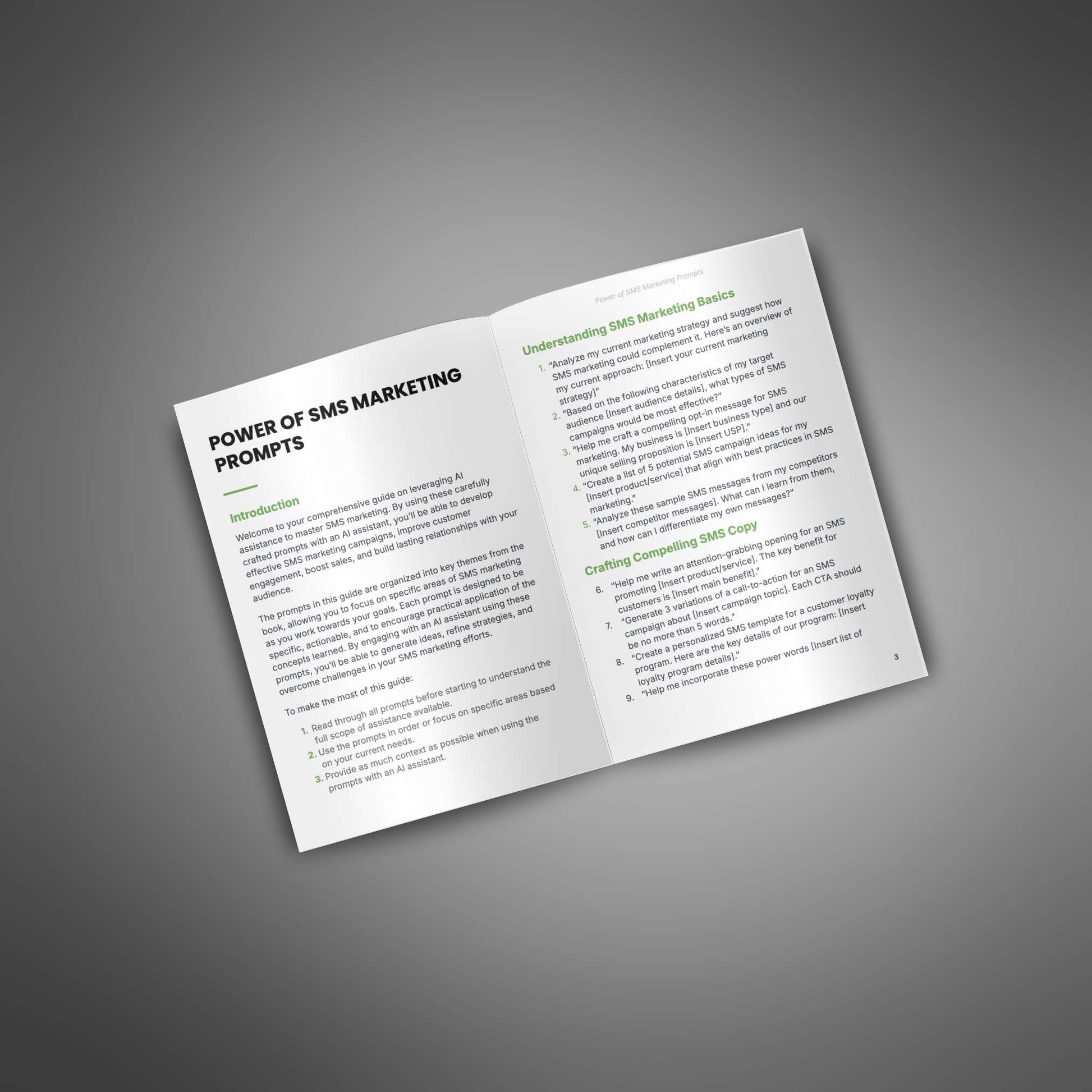 Prompt pack designed to help your customers use AI to create effective SMS marketing campaigns, improve engagement, and drive sales with easy-to-follow guidance.