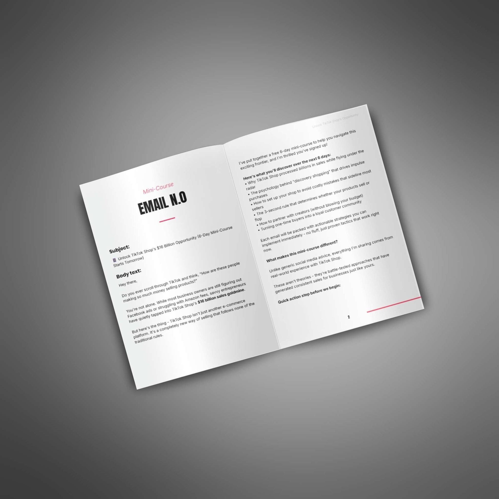 Email course designed to help you provide expert guidance on using TikTok Shop to boost sales while upselling your offering.